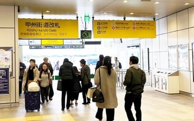1. ①JR新宿駅甲州街道改札を出て、左に曲がります。