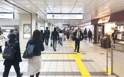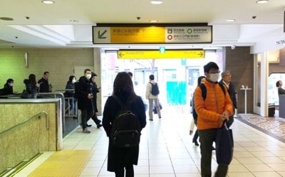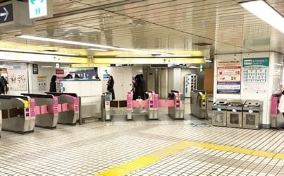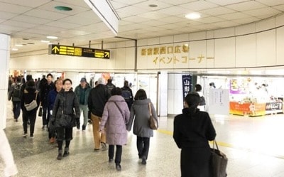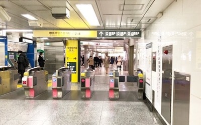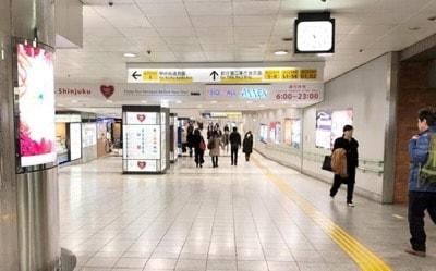 1. ①東京メトロ丸ノ内線新宿駅の西改札を出て、東京メトロ案内所の方向へ進みます。