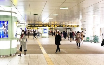 1. ①JR新宿駅方面改札を出て、右に曲がります。