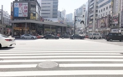 6. ⑥ガードを抜けたら大きな交差点に出ますので、左に曲がります。
