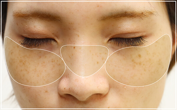 小さなシミ・そばかすが、両頬や鼻に10個以上ある方向けの取り放題プランです。